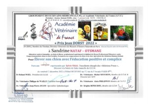 Ce livre a gagné le prix Jean Dorst en décembre 2022 décerné par l’Académie des Vétérinaires et des Médecins Ecrivains. Editions Larousse – Auteur Sandrine Nataf-Otsmane
